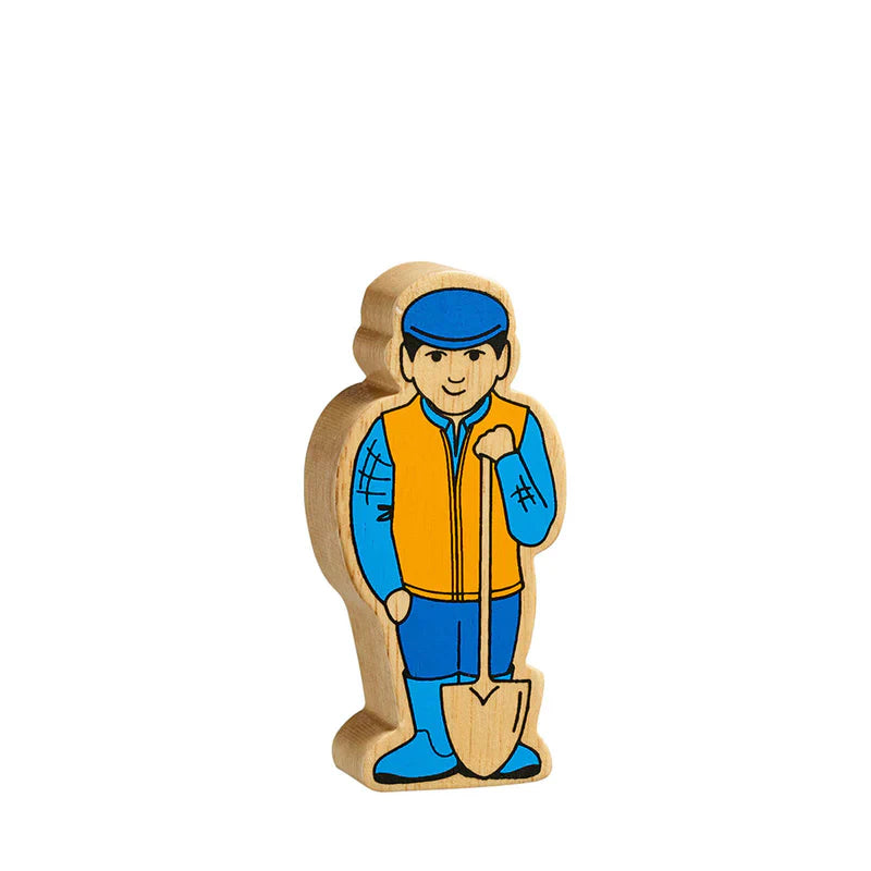 Une figurine de fermier colorée et naturelle en bois bleu et jaune, parfaite pour les petites mains. Ce gros bonhomme de ferme bleu et jaune est idéal pour empiler, trier, mettre des sacs à histoires et plus encore !