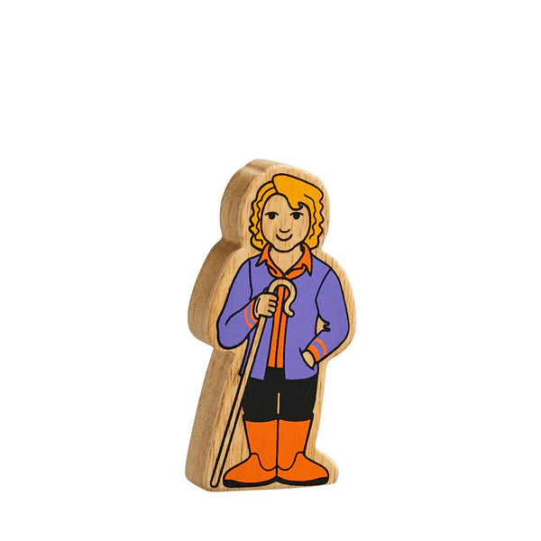 Une figurine de fermière colorée en bois naturel violet et orange, parfaite pour les petites mains. Cette grosse fermière violette et orange est idéale pour l'empilage, le tri, les sacs d'histoire et plus encore !