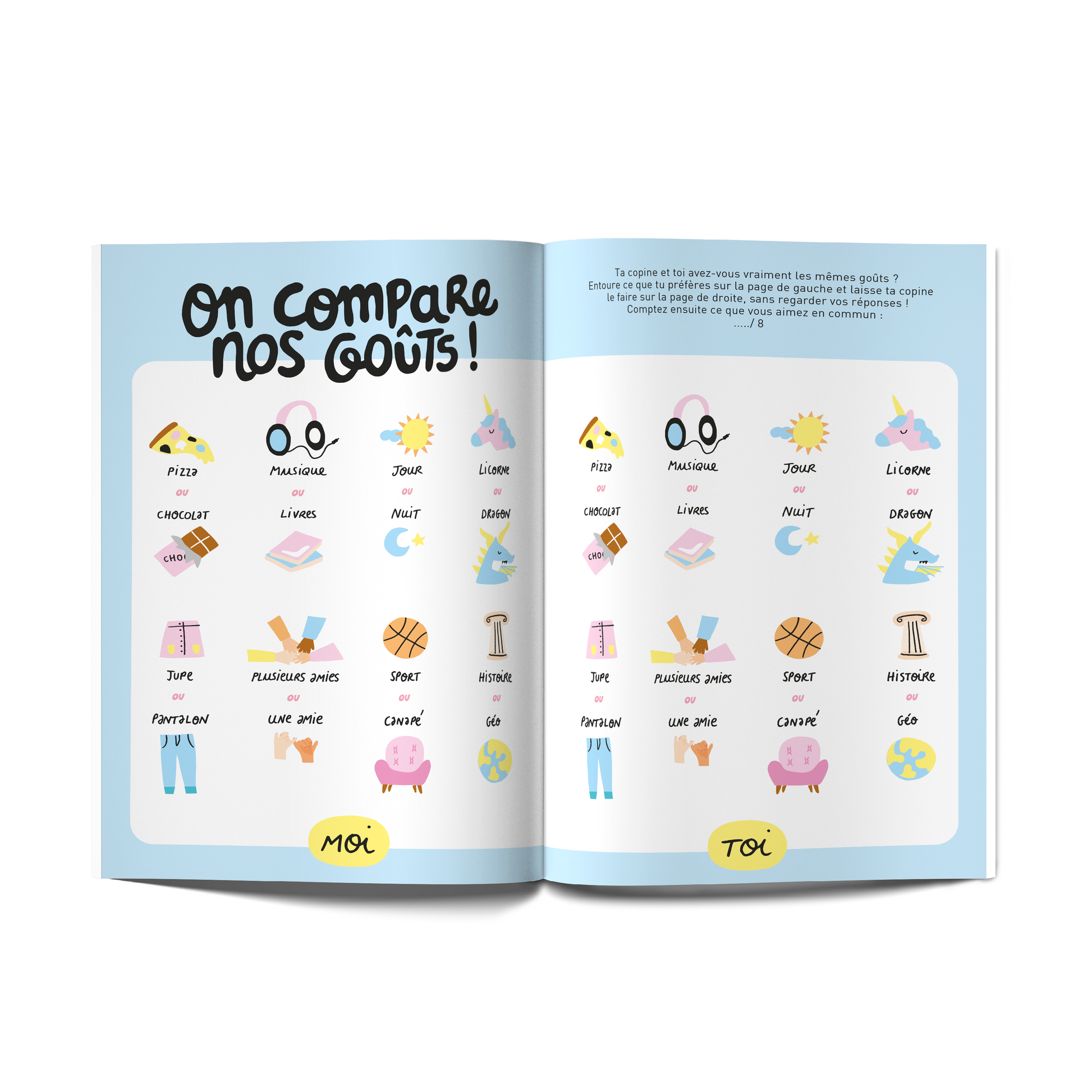 Avec ce cahier d’amitié pas comme les autres, fais ton portrait, celui de tes copines puis amusez vous à vous découvrir en répondant au test d’amitié,