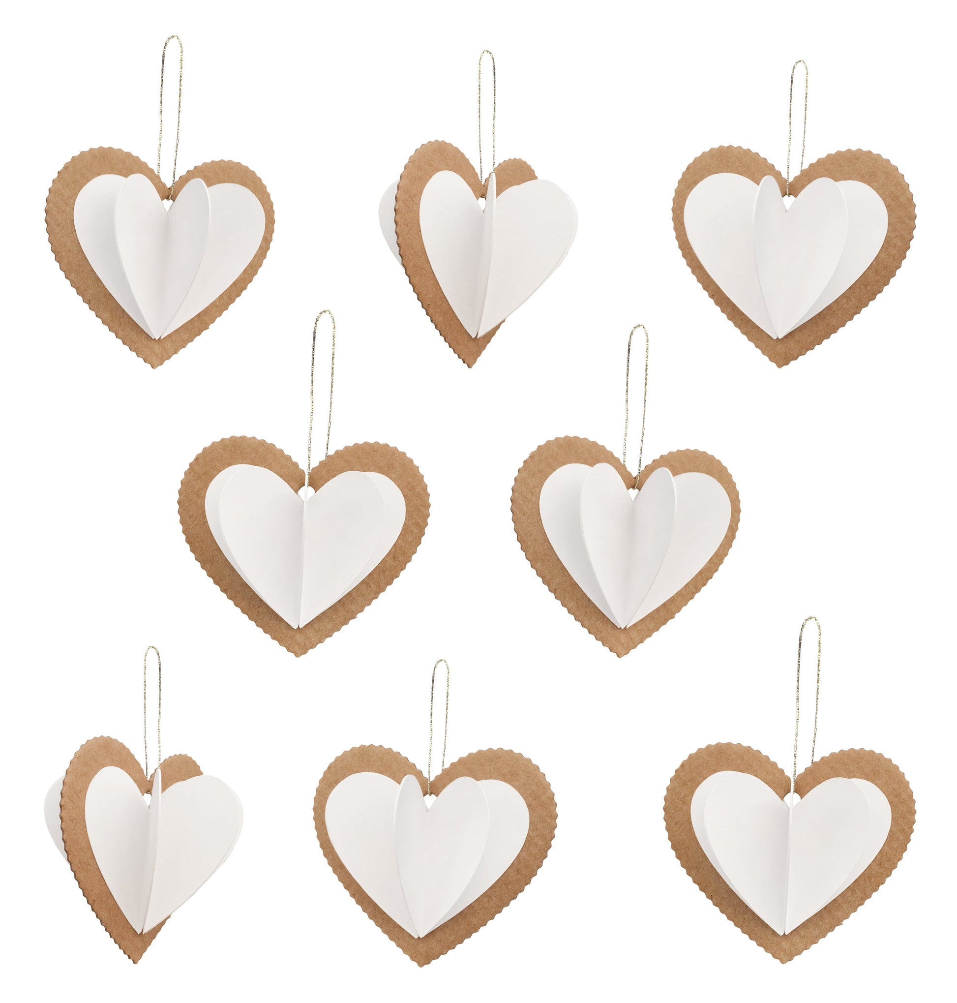 "8 Cœurs à réaliser + 6 Fils dorés : une activité manuelle alliant collage et coloriage. Pour donner vie à ces charmants cœurs en relief, il suffit d'adhérer les petits cœurs en papier sur leur base en carton. (colle non fournie) Une fois l'assemblage achevé, place à la créativité pour les personnaliser, puis à les suspendre chez soi... Une belle manière d'exprimer « je t'aime » !"