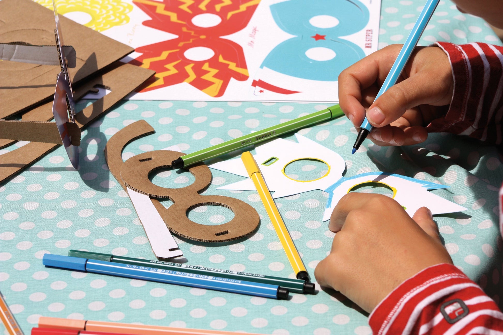"Plongez dans un atelier digne d'Hollywood, à la fois amusant et pétillant. En fixant votre forme en papier favorite sur une structure en carton, créez des lunettes originales pour vous déguiser et célébrer en grand. Les projecteurs sont sur vous, vedette en devenir !"