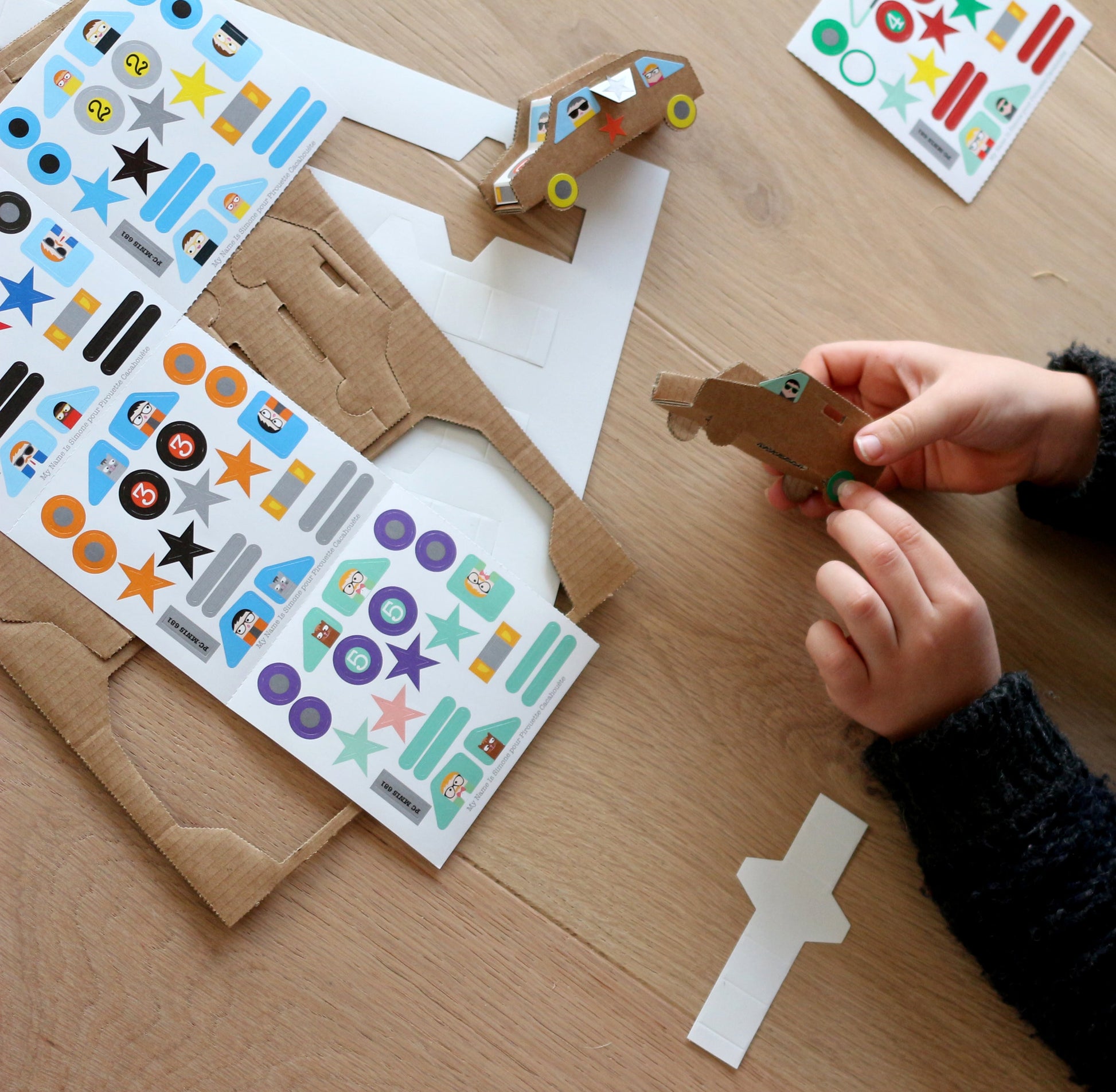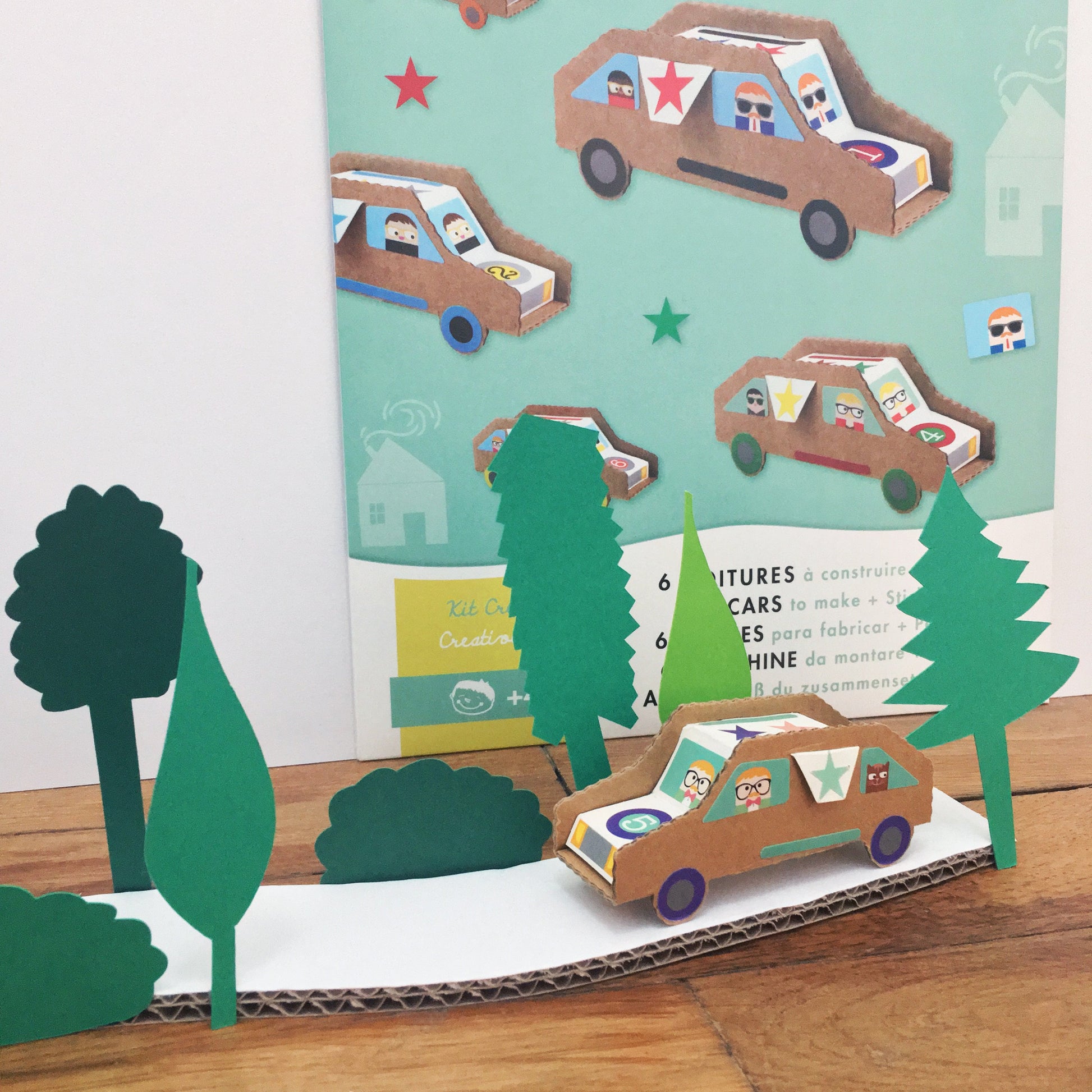 "Plongez dans un atelier bourdonnant de plaisir, à partager entre amis ou en famille. En combinant papier et carton, créez une élégante voiture rétro prête à être personnalisée avec les autocollants fournis. VROOOOM, c'est parti pour l'aventure sur quatre roues !"