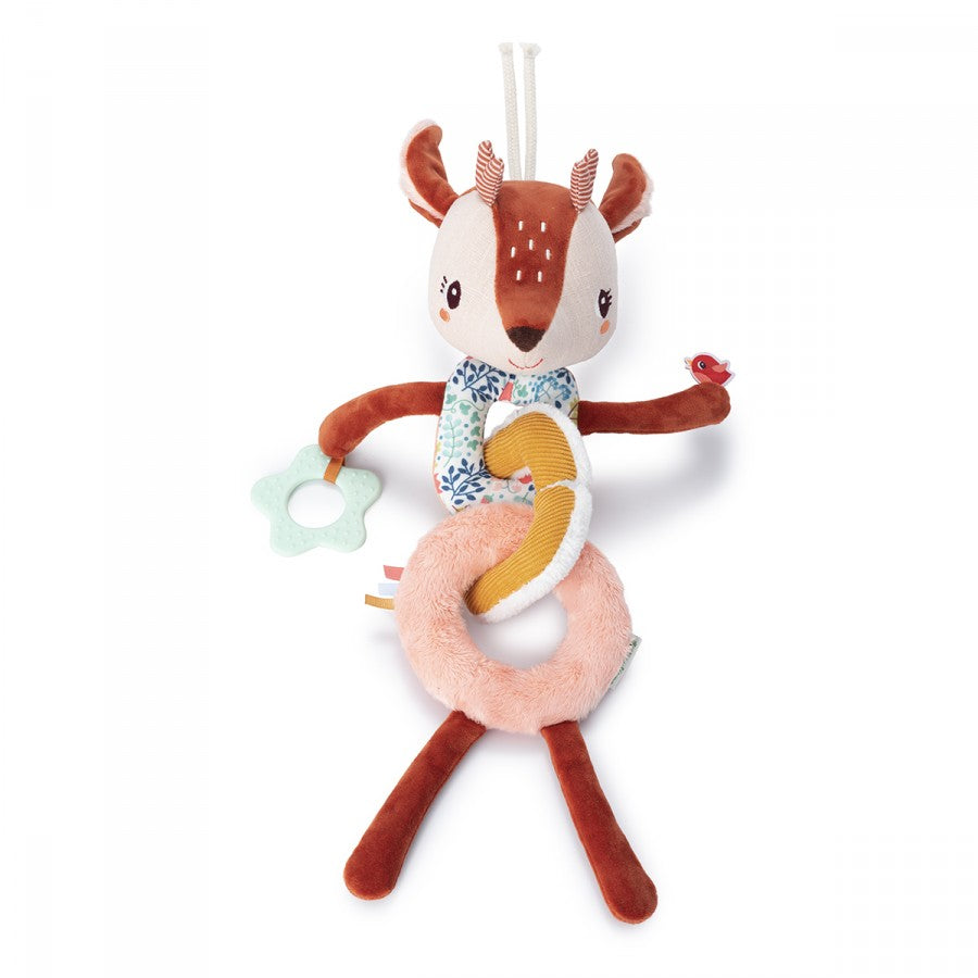 Cette guirlande souple comporte une multitude d'activités pour stimuler les sens de votre petit bout. Des bruits de cliquetis ou de crépitement, des matières variées, un anneau de dentition… autant d'éléments qui encouragent les tout petits à explorer. Les anneaux de la guirlande sont détachables. Facile à attacher grâce à la ficelle prévue à cet effet.