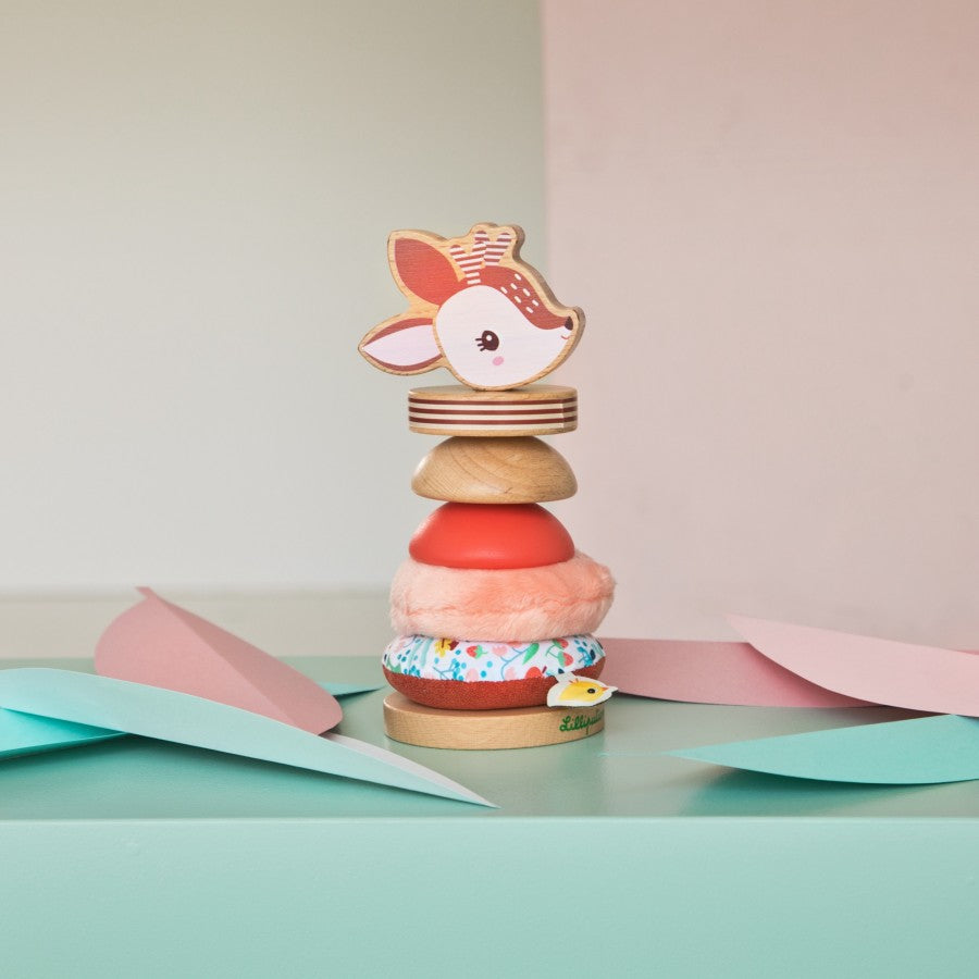 Cette pyramide A empiler originale et gaie, rEalisEe en diffErents matEriaux, dEveloppe la motricitE fine des petits bouts. Empilez les ElEments et donnez libre cours A votre crEativitE. Les matEriaux et les couleurs de nature diffErente Eveillent leurs sens.