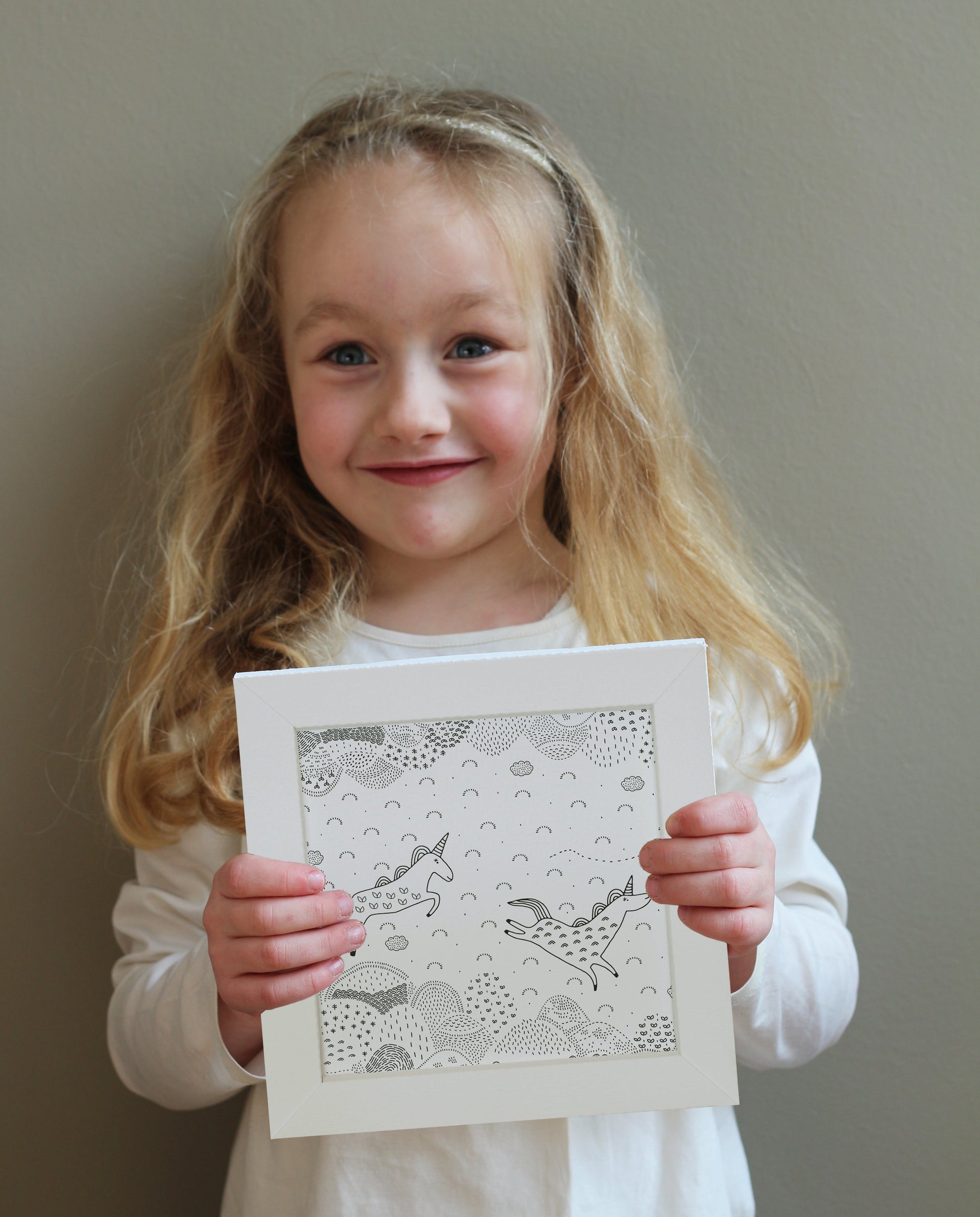 "3 Cadres Licornes à réaliser et personnaliser. Plongez dans une activité à la fois relaxante et artistique. Coloriez 3 dessins enchantés de licornes, puis transformez les en cadres en pliant et assemblant les bords de la feuille à l'aide des élastiques innovants (technologie ElastiblockTM). C'est le moment pour les jeunes talents de briller !"